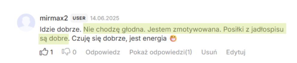 Zobacz przemiany naszych klubowiczek Justyna -25 kg i -109 cm w obwodach! Ania -15 kg! Monika z rozmiaru 4XL na XL! Joanna -35 kg! Efekty naszych klientek Opinie o naszych jadłospisach